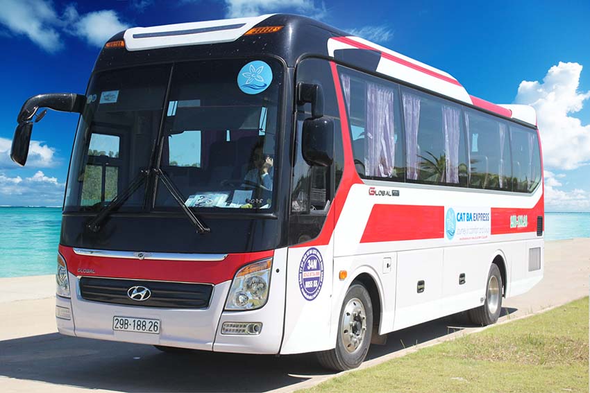 Bus from Cat Ba Island to Hanoi is a high-quality service provided by Cat Ba Express, departing at 9:30, 12:30, 15:30, and 17:00 daily.