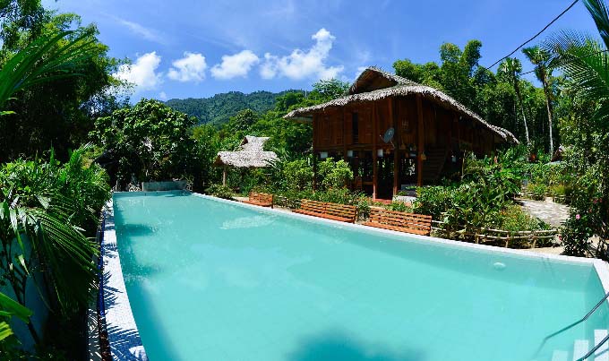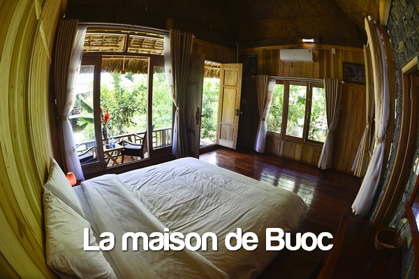The cosy dormitory in the traditional stilt house will provide a comfortable bed , private window , fan , mosquito net , private light and a wooden work tablet . All spaces are separated by curtains to offer intimacy to every guests.