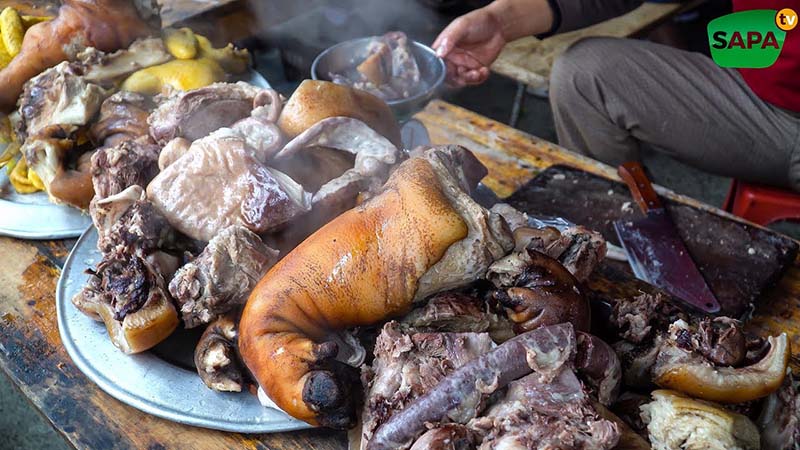 Ngoài ra, bản Cát Cát còn có nhiều món ăn với cách chế biến phong phú độc đáo. Rượu ngô Mông, thắng cố, thịt hun khói “khăng gai”, tiết canh gà, nhái nấu măng…