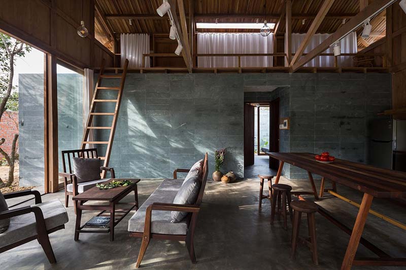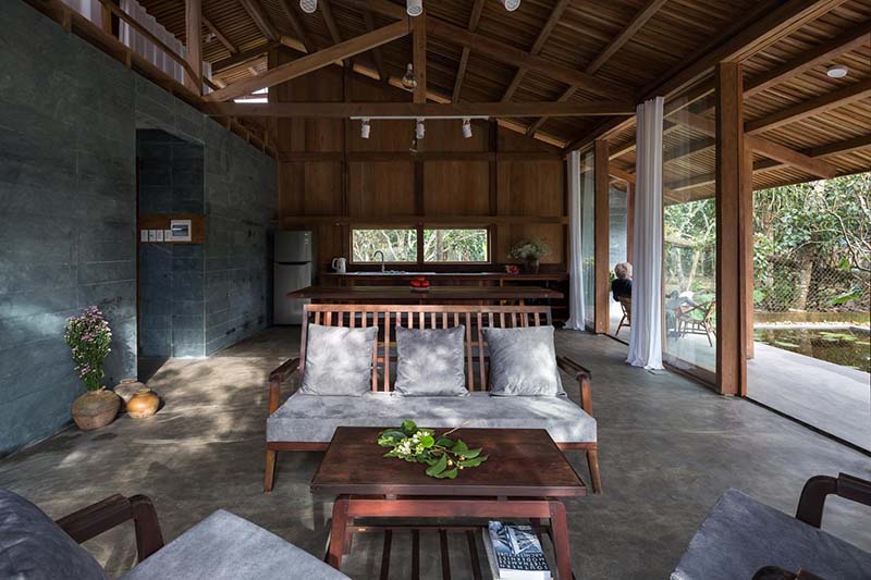 Thật thú vị, khi đọc một cuốn sách gần cửa sổ nhỏ và thưởng thức vườn bưởi bên dưới. Tất cả các không gian của ngôi nhà đều được bao phủ bởi một mái dốc lớn.