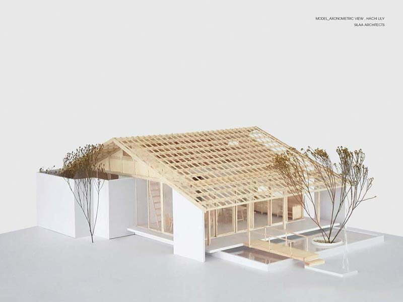 Ngôi nhà nhỏ tên Hachi Lily, được xây dựng như một ngôi nhà gỗ. Để đáp ứng ước mơ tạo dựng của chủ nhân khi ”về vườn”.