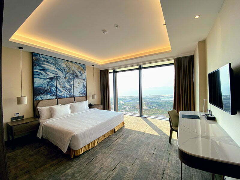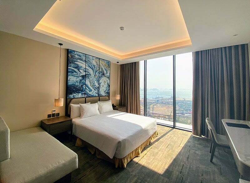Khách sạn có 328 phòng được thiết kế tinh tế, thể hiện đẳng cấp 5 sao. Tất cả các phòng đều có view nhìn ra Vịnh Hạ Long, cầu Bãi Cháy và thành phố.