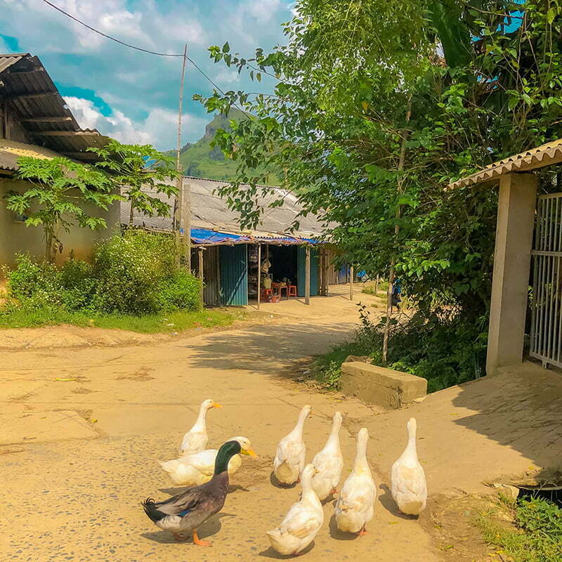 Sau đó thì vệ sinh, ăn uống, thay đồ rồi đi chơi nè .Từ homestay tụi mình đi ngược về bản Tú Lệ.